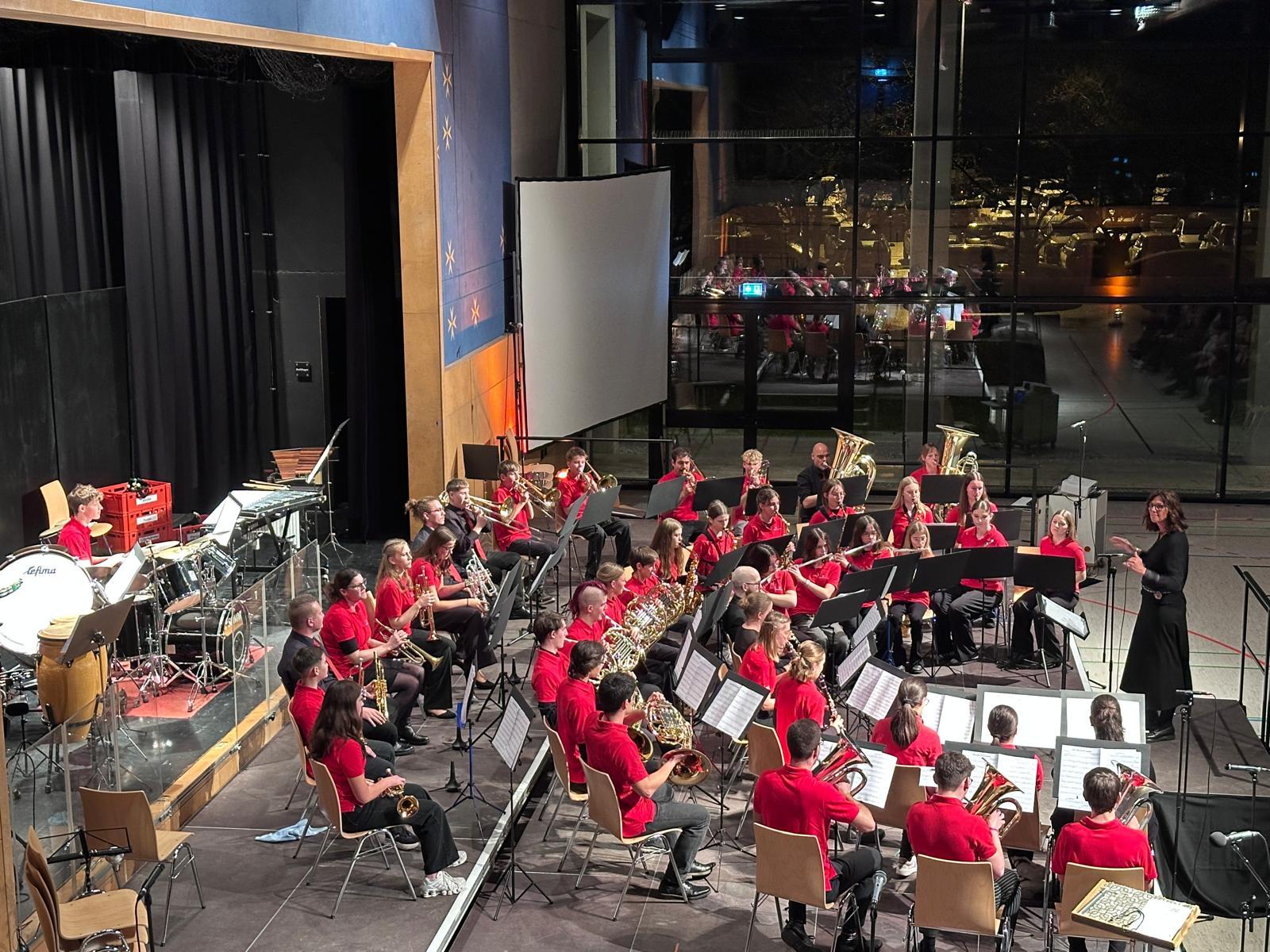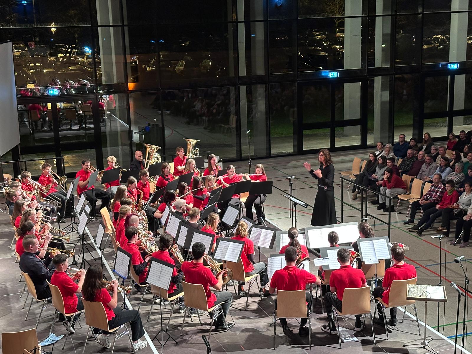 Rund 100 Musikerinnen und Musiker aus Vororchester, Jugendorchester und Hauptorchester haben am Samstagabend in der gut besuchten Maltesterhalle ein eindrucksvolles vorweihnachtliches Jahreskonzert gestaltet. Gemeinsam mit dem Publikum begaben sie sich auf eine musikalische Entdeckungsreise durch die faszinierende, farbenreiche Welt der sinfonischen Blasmusik. Schon beim Betreten des Saals war die Freude auf den Abend spürbar – die Stimmung blieb durchweg ausgezeichnet.